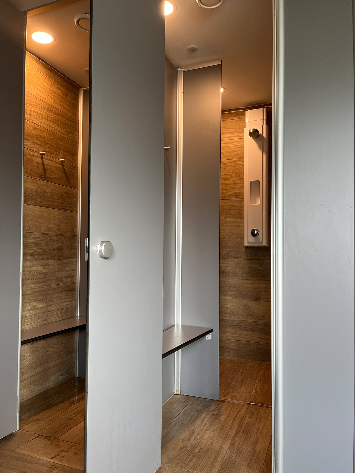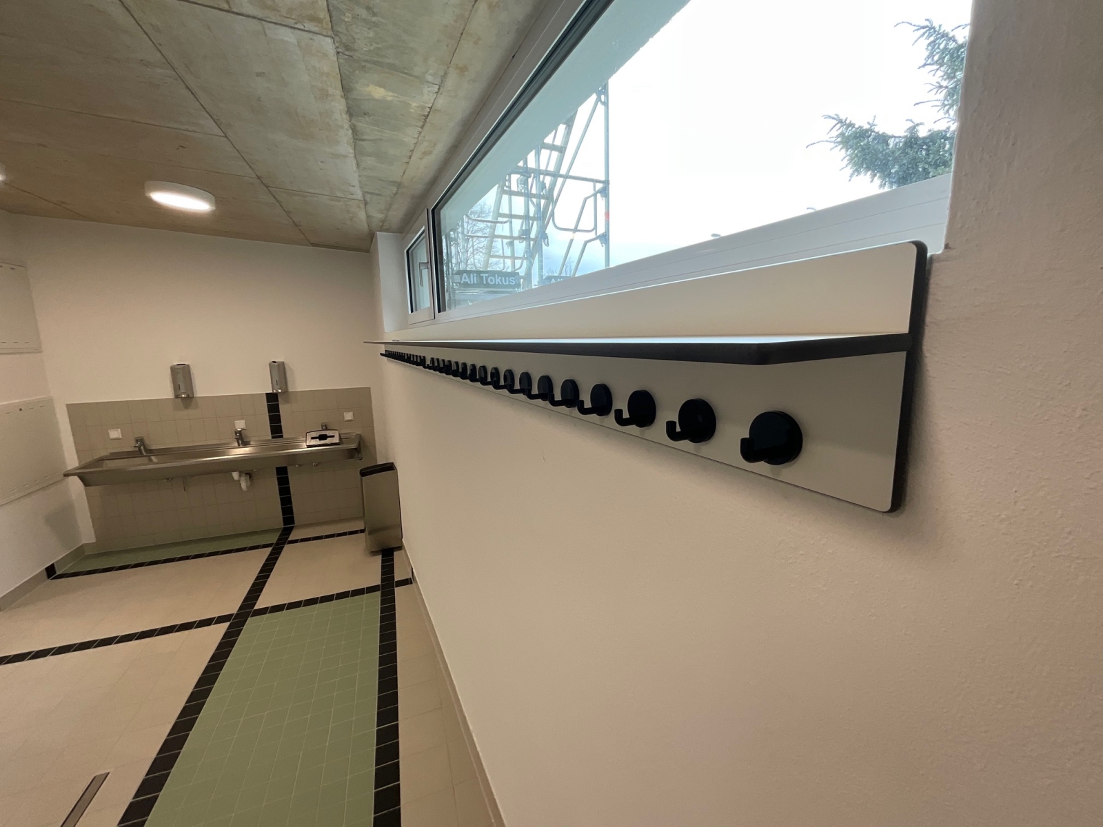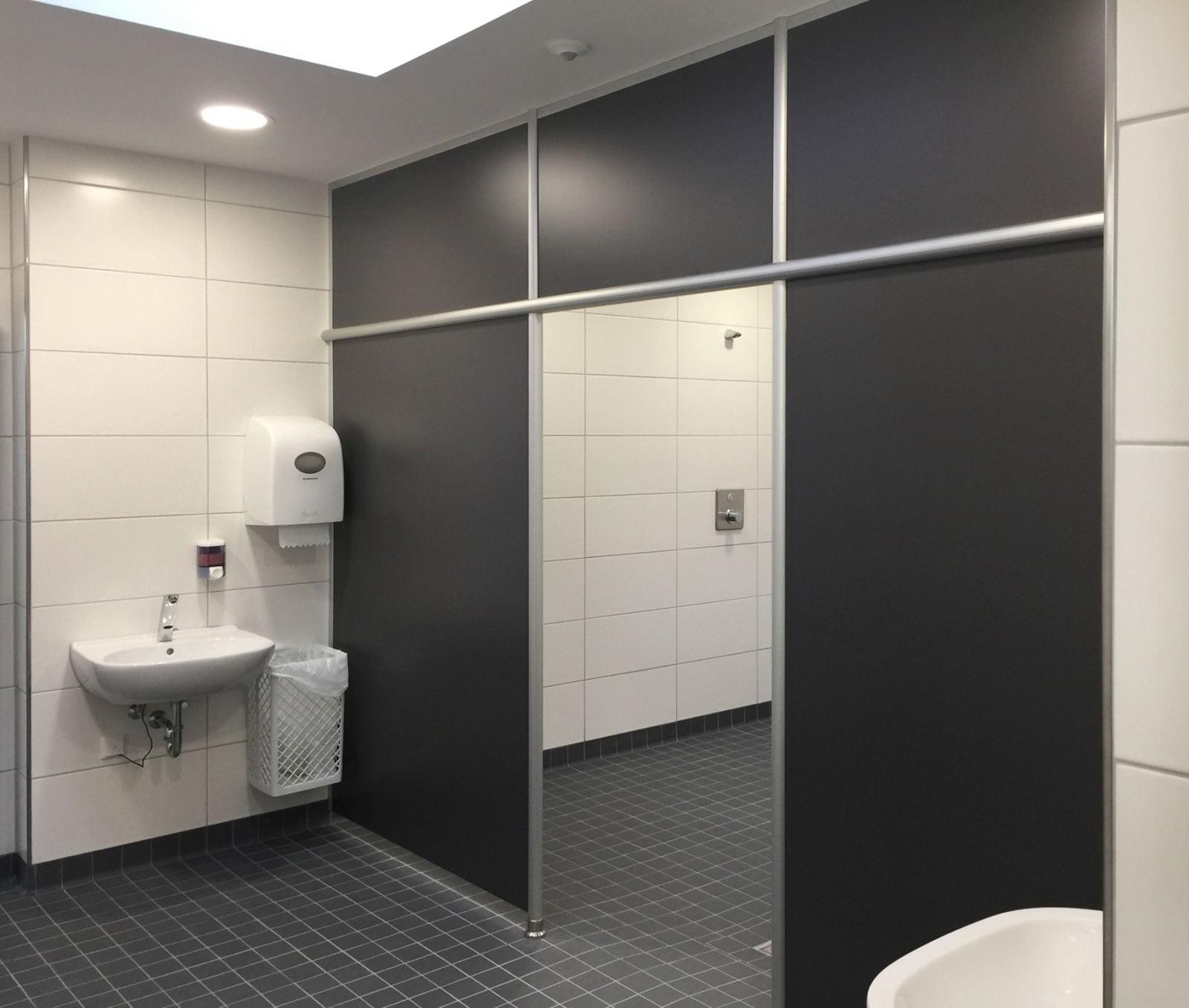 Duschtrennwände und Schamwände sorgen für Hygiene und Privatsphäre in den Nassbereichen, während die Sanitärausstattung – bestehend aus WC-Trennwänden, Waschtischen und praktischem Zubehör – den Sanitärbereich optimal ergänzt.