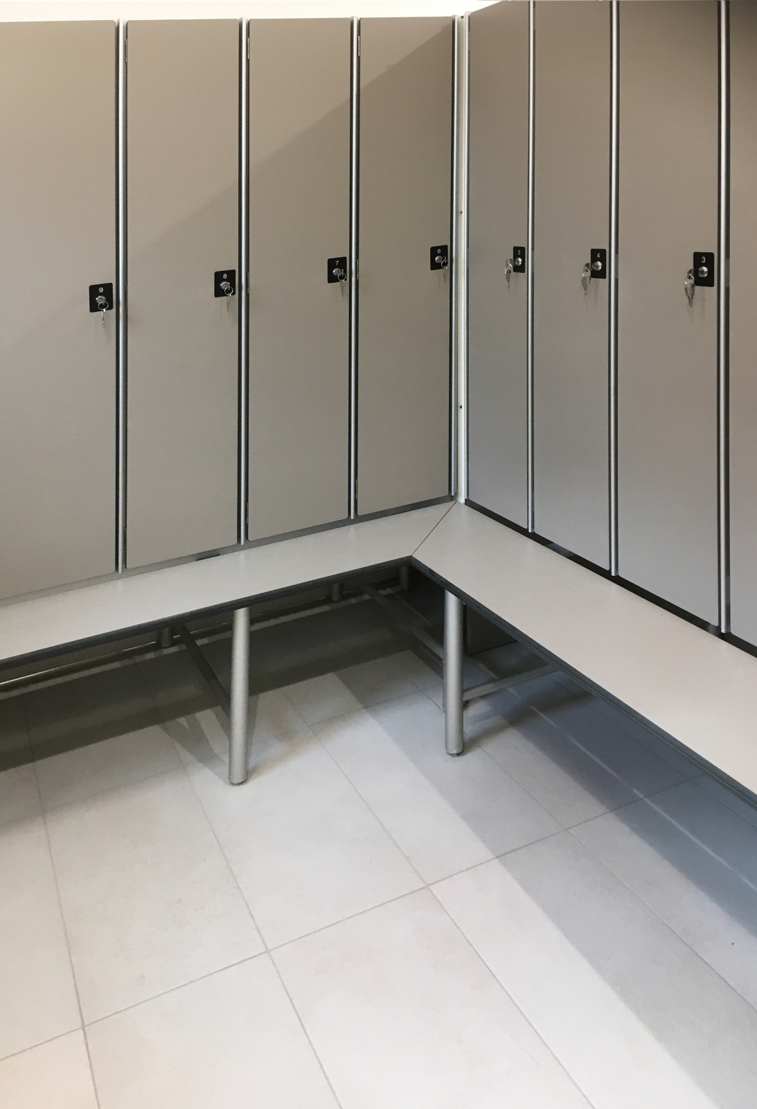 Für ein funktionales Gesamtbild im Umkleidebereich bieten wir ergänzende Ausstattung, die aufeinander abgestimmt und montagefreundlich kombinierbar ist.